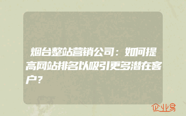 - 烟台整站营销公司:如何提高网站排名以吸引更多潜在客户?