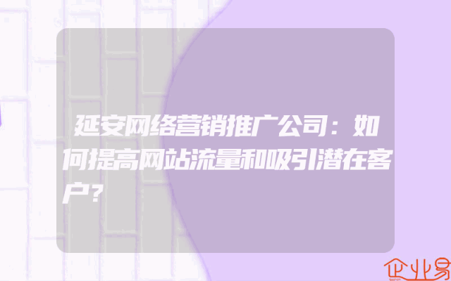 - 延安网络营销推广公司:如何提高网站流量和吸引潜在客户?