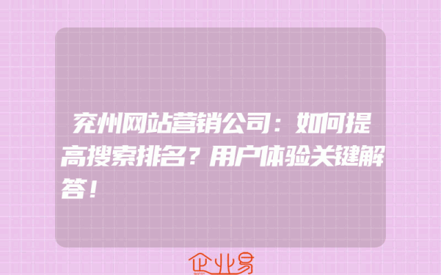- 兖州网站营销公司:如何提高搜索排名?用户体验关键解答!