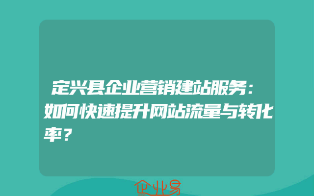- 定兴县企业营销建站服务:如何快速提升网站流量与转化率?