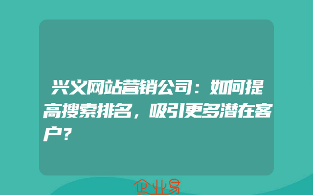 - 兴义网站营销公司:如何提高搜索排名,吸引更多潜在客户?