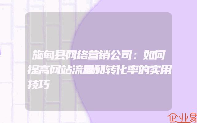 - 施甸县网络营销公司:如何提高网站流量和转化率的实用技巧