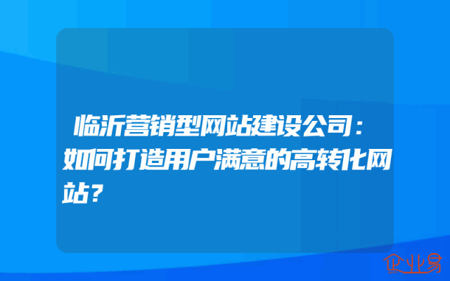 - 临沂营销型网站建设公司:如何打造用户满意的高转化网站?
