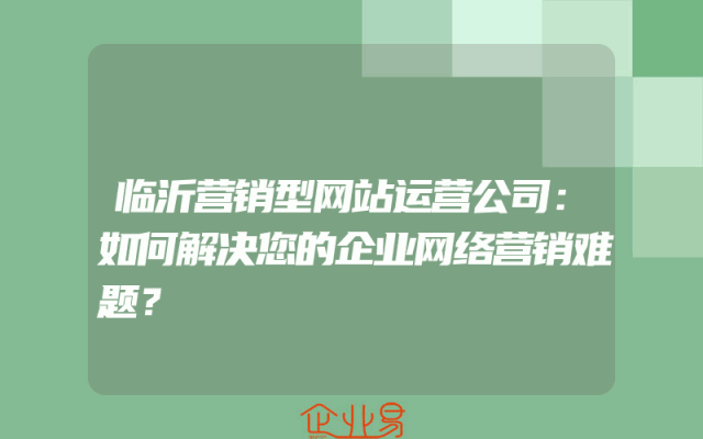 - 临沂营销型网站运营公司:如何解决您的企业网络营销难题?