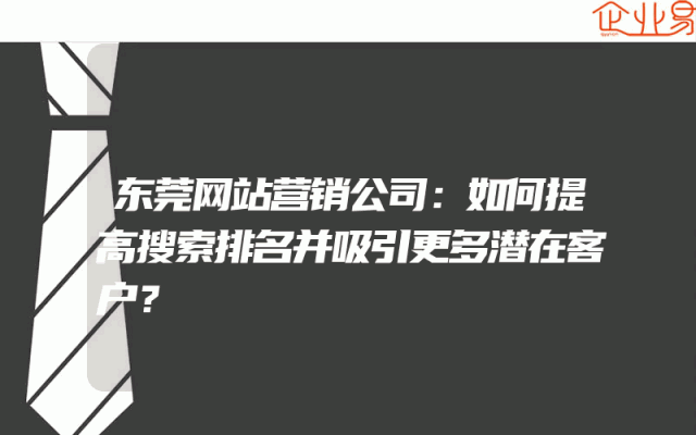 - 东莞网站营销公司:如何提高搜索排名并吸引更多潜在客户?