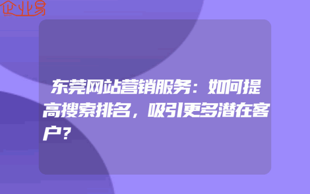 - 东莞网站营销服务:如何提高搜索排名,吸引更多潜在客户?