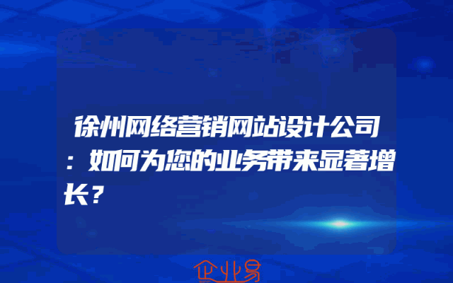 - 徐州网络营销网站设计公司:如何为您的业务带来显著增长?