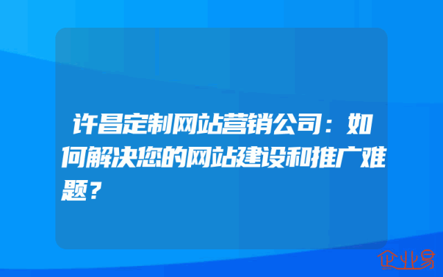 - 许昌定制网站营销公司:如何解决您的网站建设和推广难题?