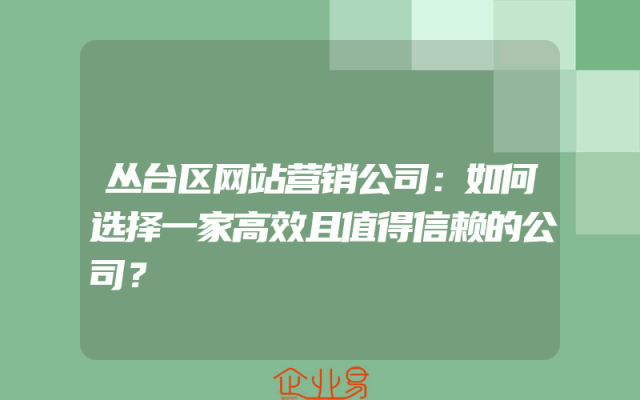 - 丛台区网站营销公司:如何选择一家高效且值得信赖的公司?