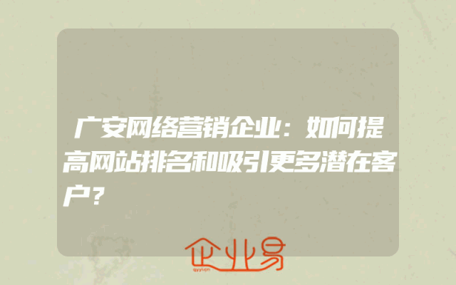 - 广安网络营销企业:如何提高网站排名和吸引更多潜在客户?