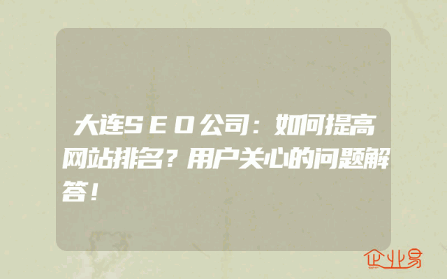 - 大连SEO公司:如何提高网站排名?用户关心的问题解答!