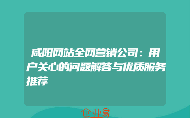 - 咸阳网站全网营销公司:用户关心的问题解答与优质服务推荐
