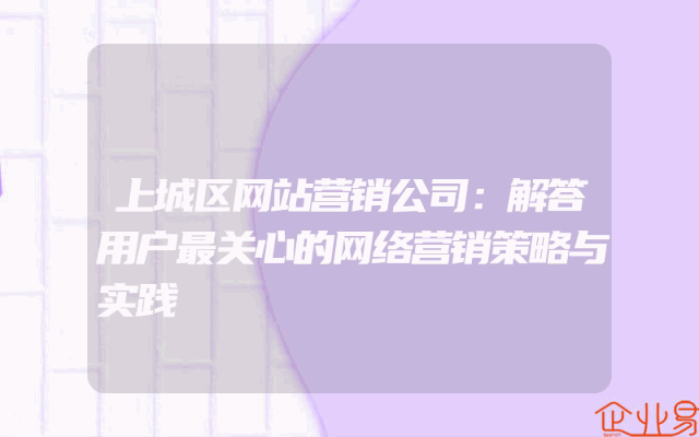 - 上城区网站营销公司:解答用户最关心的网络营销策略与实践