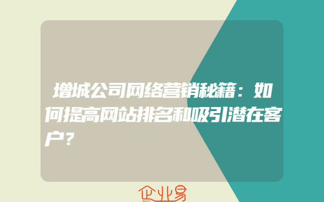 - 增城公司网络营销秘籍:如何提高网站排名和吸引潜在客户?