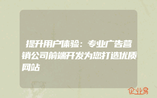 - 提升用户体验:专业广告营销公司前端开发为您打造优质网站