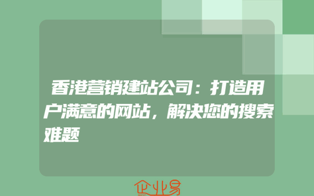 - 香港营销建站公司:打造用户满意的网站,解决您的搜索难题