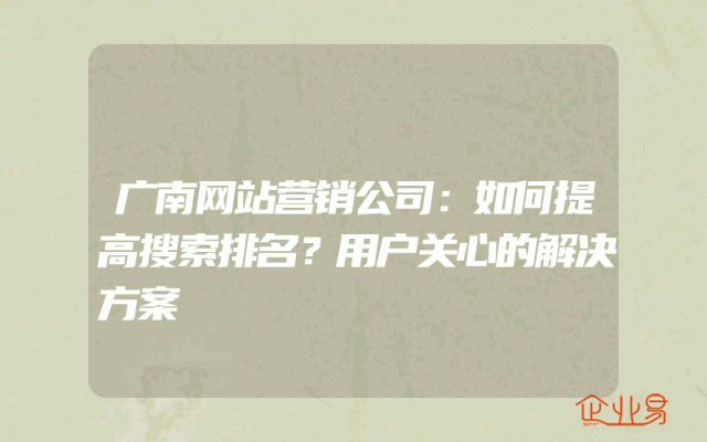- 广南网站营销公司:如何提高搜索排名?用户关心的解决方案