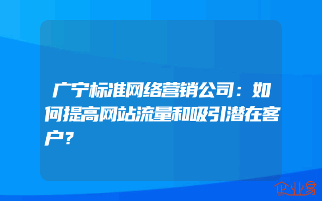 - 广宁标准网络营销公司:如何提高网站流量和吸引潜在客户?