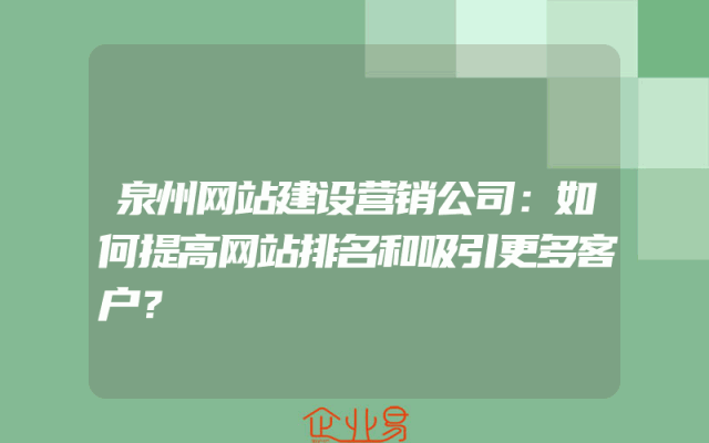 - 泉州网站建设营销公司:如何提高网站排名和吸引更多客户?