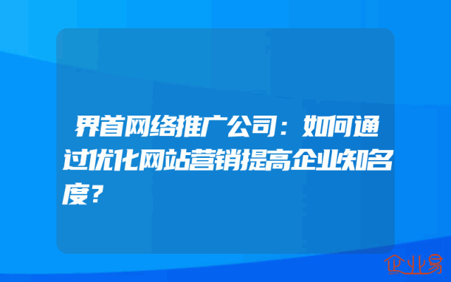 - 界首网络推广公司:如何通过优化网站营销提高企业知名度?