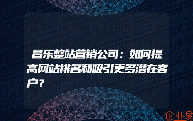 - 昌乐整站营销公司:如何提高网站排名和吸引更多潜在客户?