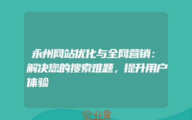 - 永州网站优化与全网营销:解决您的搜索难题,提升用户体验