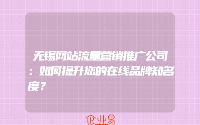 - 无锡网站流量营销推广公司:如何提升您的在线品牌知名度?