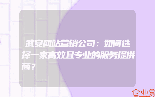 - 武安网站营销公司:如何选择一家高效且专业的服务提供商?