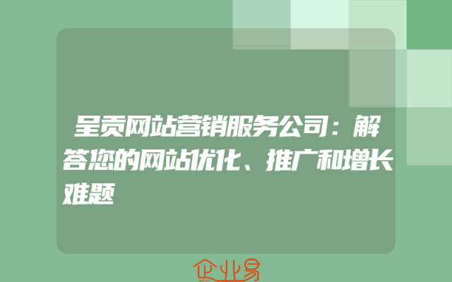 - 呈贡网站营销服务公司:解答您的网站优化、推广和增长难题