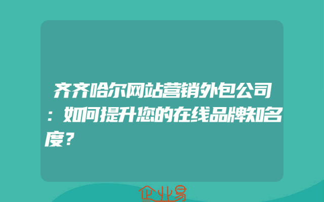 - 齐齐哈尔网站营销外包公司:如何提升您的在线品牌知名度?