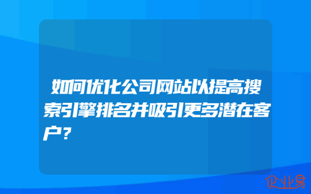 - 如何优化公司网站以提高搜索引擎排名并吸引更多潜在客户?
