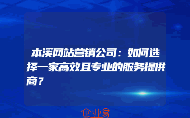 - 本溪网站营销公司:如何选择一家高效且专业的服务提供商?