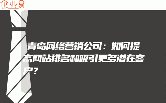- 青岛网络营销公司:如何提高网站排名和吸引更多潜在客户?在当今的数字化时代,企业需要通过网络营销来扩大业务范围和吸引更多的潜在客户。然而,仅仅建立一个网站并不足以保证成功。为了提高网站的排名并吸引更多的访问者,企业需要采取一系列有效的网络营销