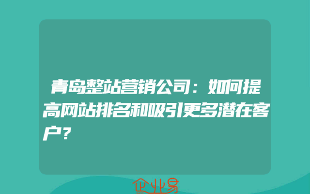 - 青岛整站营销公司:如何提高网站排名和吸引更多潜在客户?