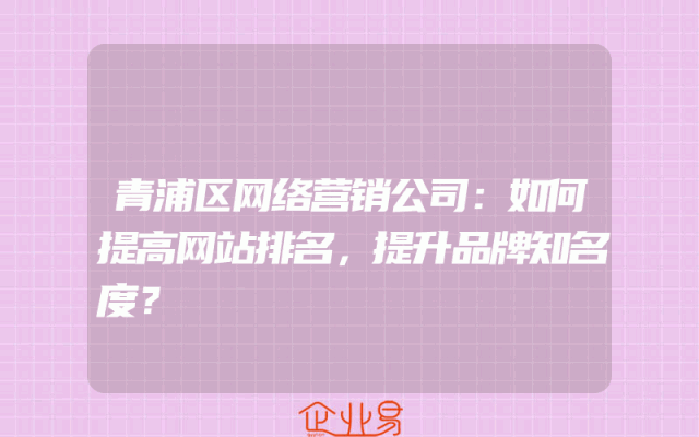 - 青浦区网络营销公司:如何提高网站排名,提升品牌知名度?