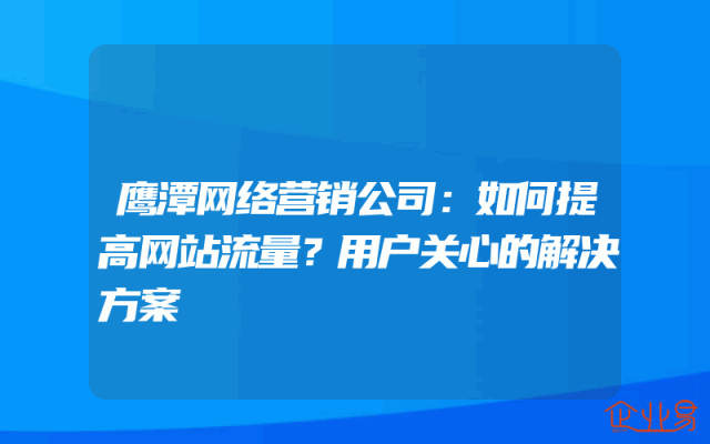 - 鹰潭网络营销公司:如何提高网站流量?用户关心的解决方案