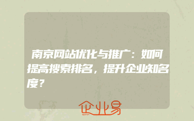 - 南京网站优化与推广:如何提高搜索排名,提升企业知名度?