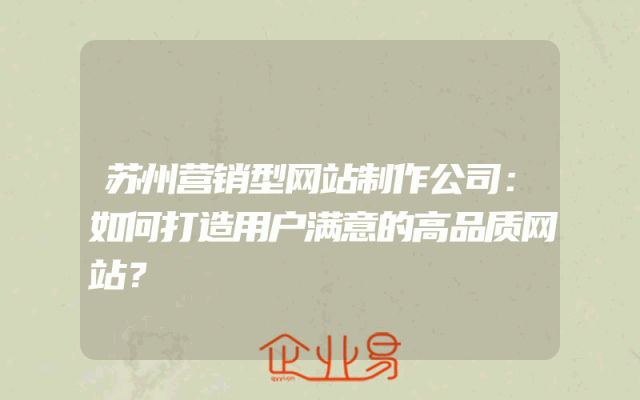- 苏州营销型网站制作公司:如何打造用户满意的高品质网站?