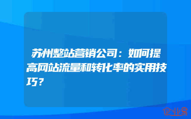 - 苏州整站营销公司:如何提高网站流量和转化率的实用技巧?