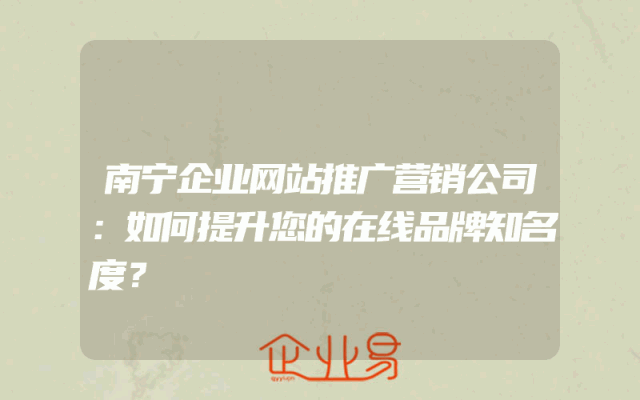 - 南宁企业网站推广营销公司:如何提升您的在线品牌知名度?