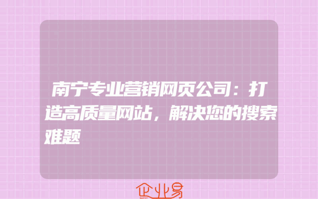 - 南宁专业营销网页公司:打造高质量网站,解决您的搜索难题
