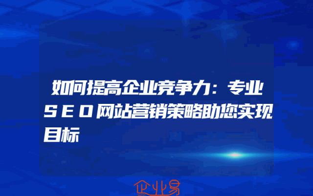 - 如何提高企业竞争力:专业SEO网站营销策略助您实现目标