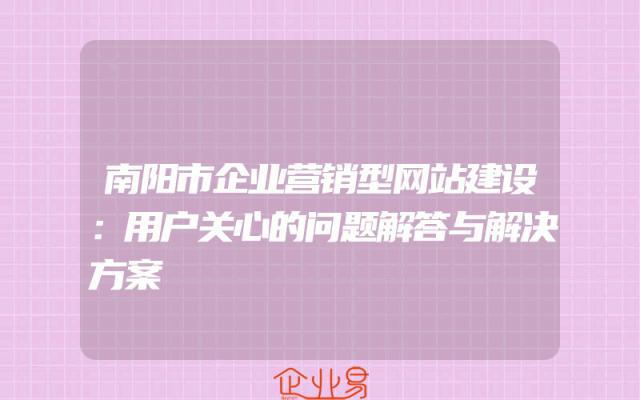 - 南阳市企业营销型网站建设:用户关心的问题解答与解决方案