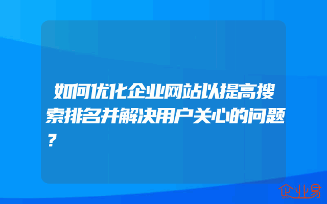 - 如何优化企业网站以提高搜索排名并解决用户关心的问题?