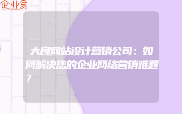 - 大良网站设计营销公司:如何解决您的企业网络营销难题?