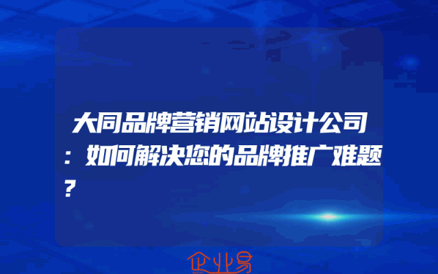 - 大同品牌营销网站设计公司:如何解决您的品牌推广难题?