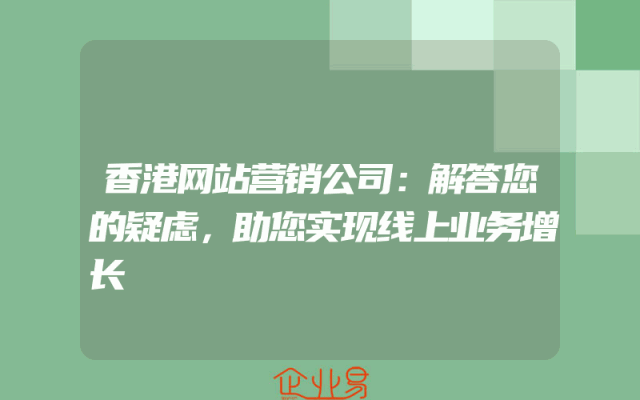 - 香港网站营销公司:解答您的疑虑,助您实现线上业务增长