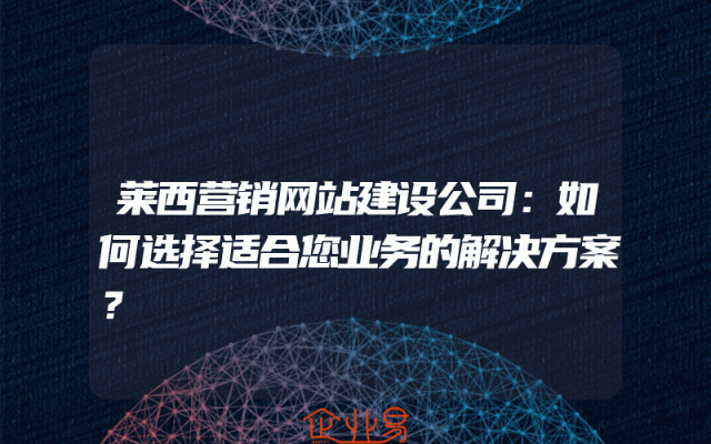 - 莱西营销网站建设公司:如何选择适合您业务的解决方案?