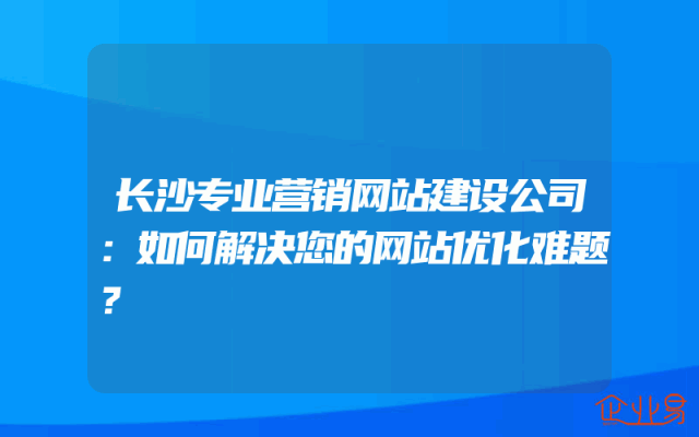 - 长沙专业营销网站建设公司:如何解决您的网站优化难题?