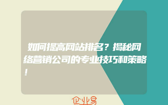 - 如何提高网站排名?揭秘网络营销公司的专业技巧和策略!